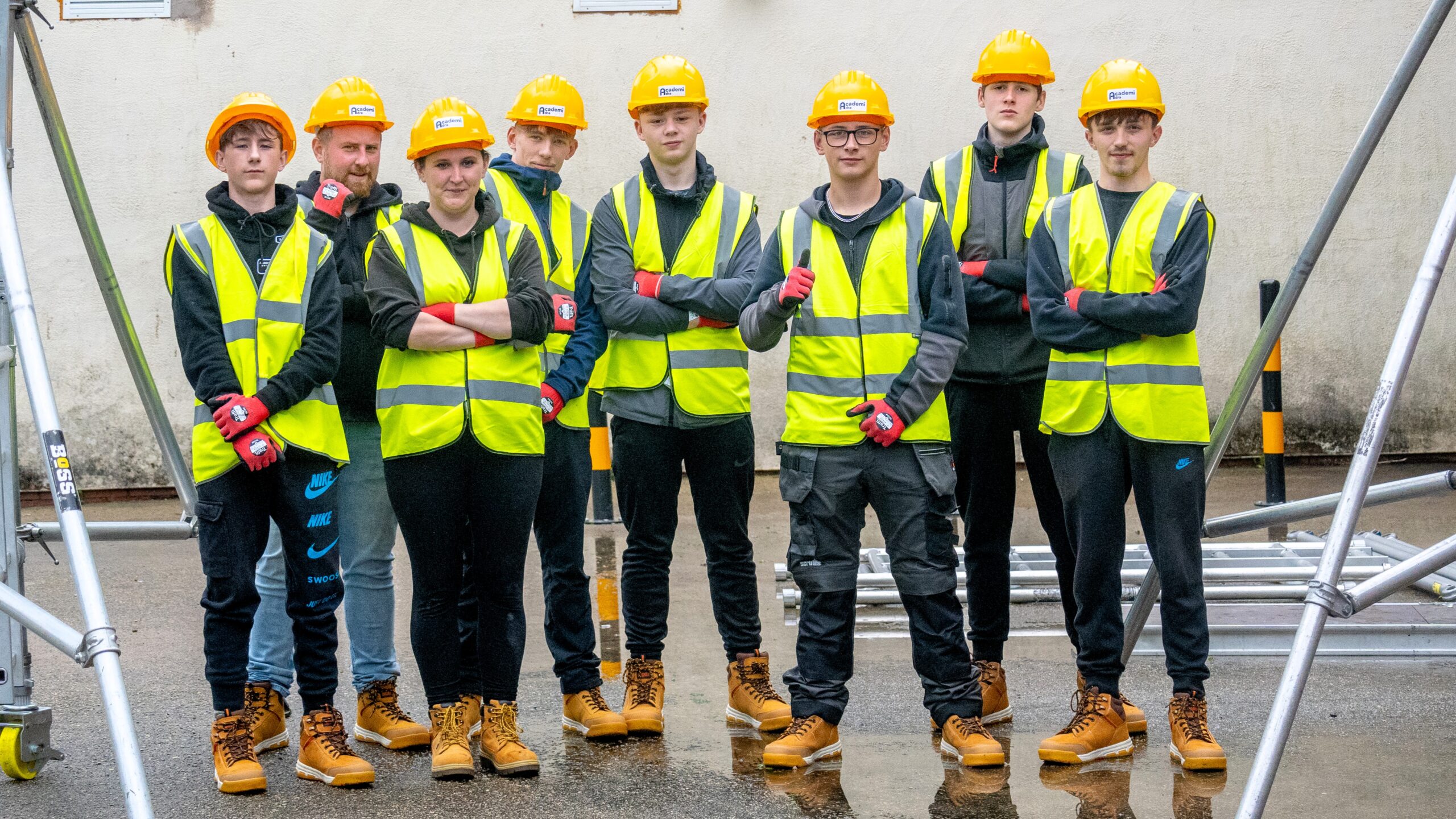 Cafodd Trystan, Dylan a Tomos le ar y cwrs Adeiladwaith sy’n un o’r cyrsiau mwyaf poblogaidd. Ar ôl cael wythnos o hyfforddiant ac wythnos o brofiad gwaith bu’r tri yn llwyddiannus yn eu cyfweliadau i gael lleoliad gwaith gyda thâl trwy Academi Adra.