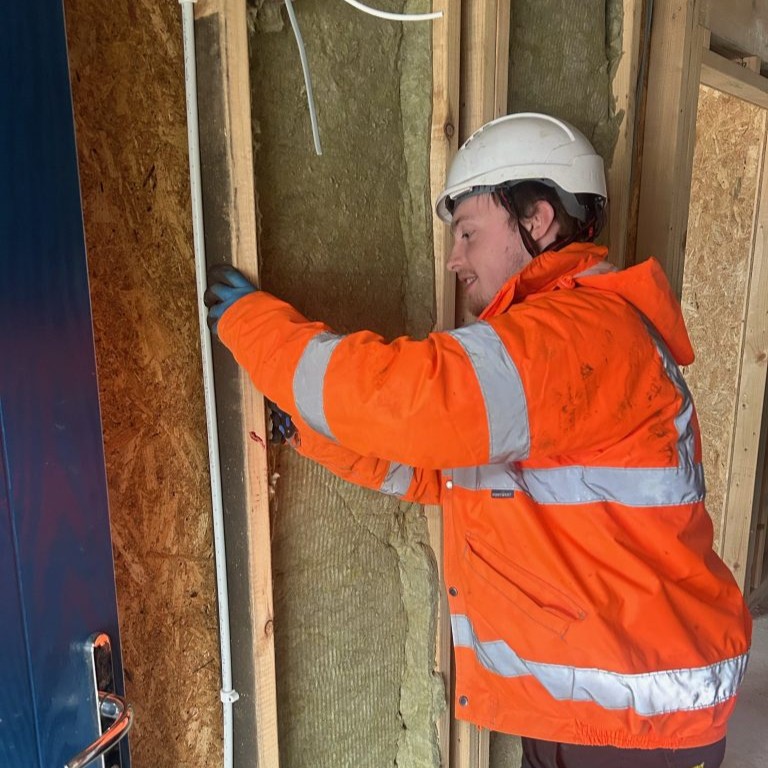Mae Trystan ar leoliad gwaith gyda thâl am 16 wythnos gyda Williams Homes. Mae Williams Homes yn cyd-weithio gydag Academi Adra fel partner, ac yn cynnig cyfleon unigryw i bobl ifanc lleol i gael dysgu am y dulliau adeiladu diweddaraf o fewn eu cymunedau.