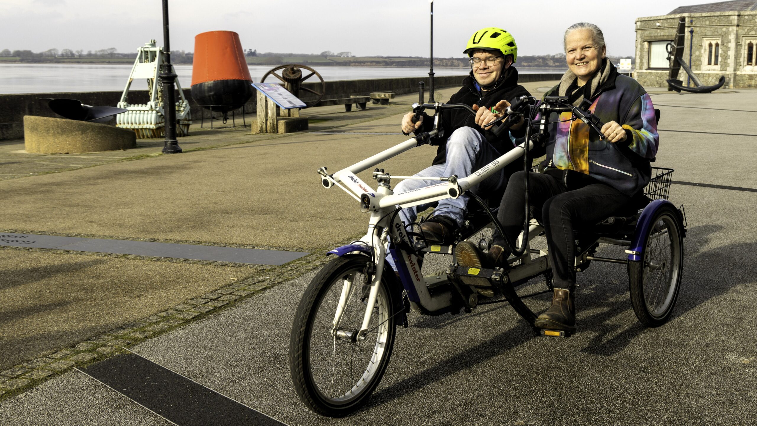 Drwy’r cynllun Beicio i Bawb cafodd dau feic arbenigol newydd eu prynu.