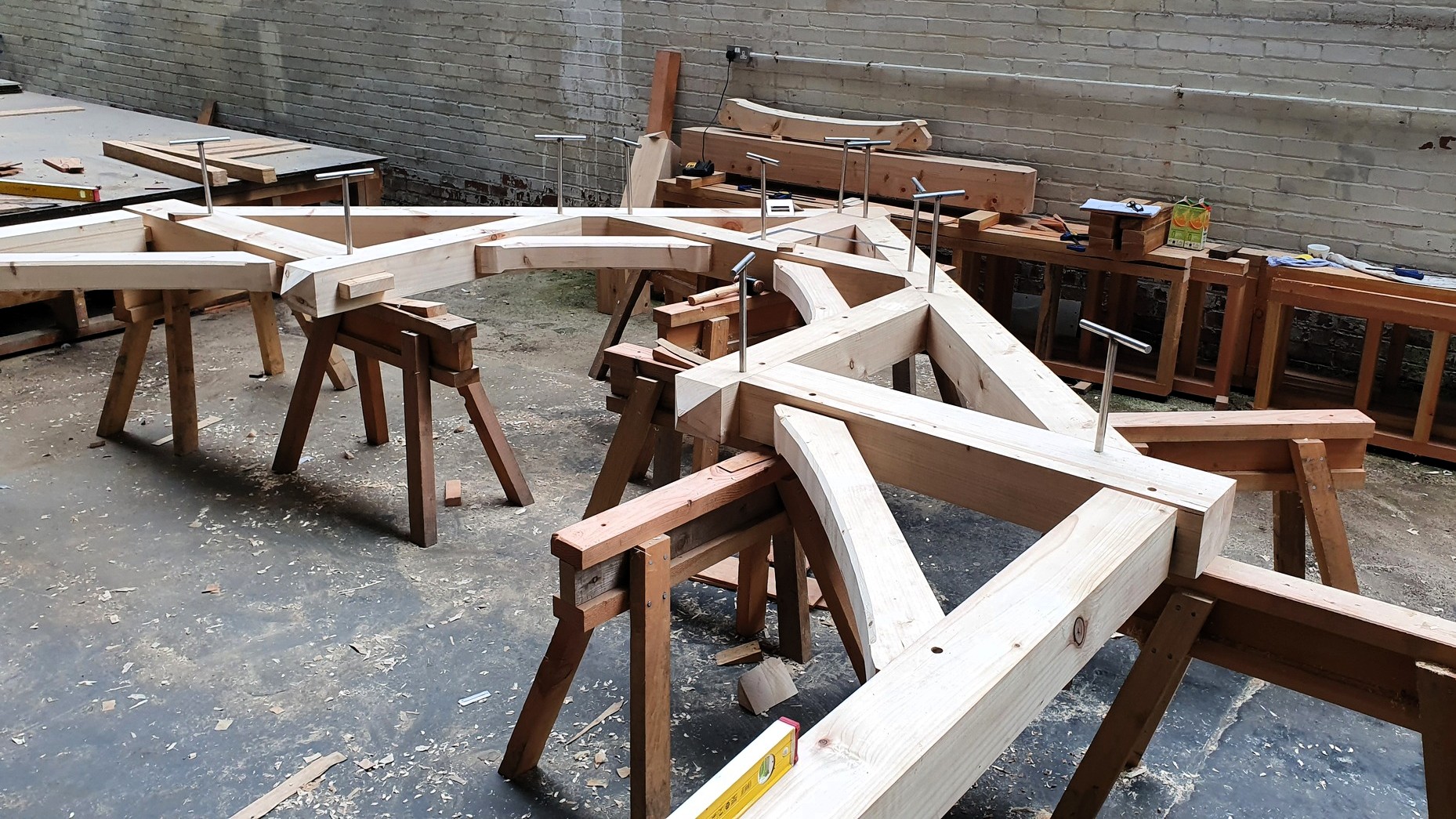 Mae Arfon Timber Frames yn gwmni sy’n arbenigo mewn adeiladau ffrâm bren perfformiad uchel gan ddefnyddio pren lleol yn bennaf. Wedi’i sefydlu ddiwedd 2023, mae’r cwmni wedi tyfu’n gyflym a bellach yn cyflogi saith o bobl, gyda dros eu hanner yn ferched. Mae chwech yn ymwneud â’r ochr gweithgynhyrchu ac adeiladu, a pherson arall yn rheoli’r rhaglen yn y swyddfa.
